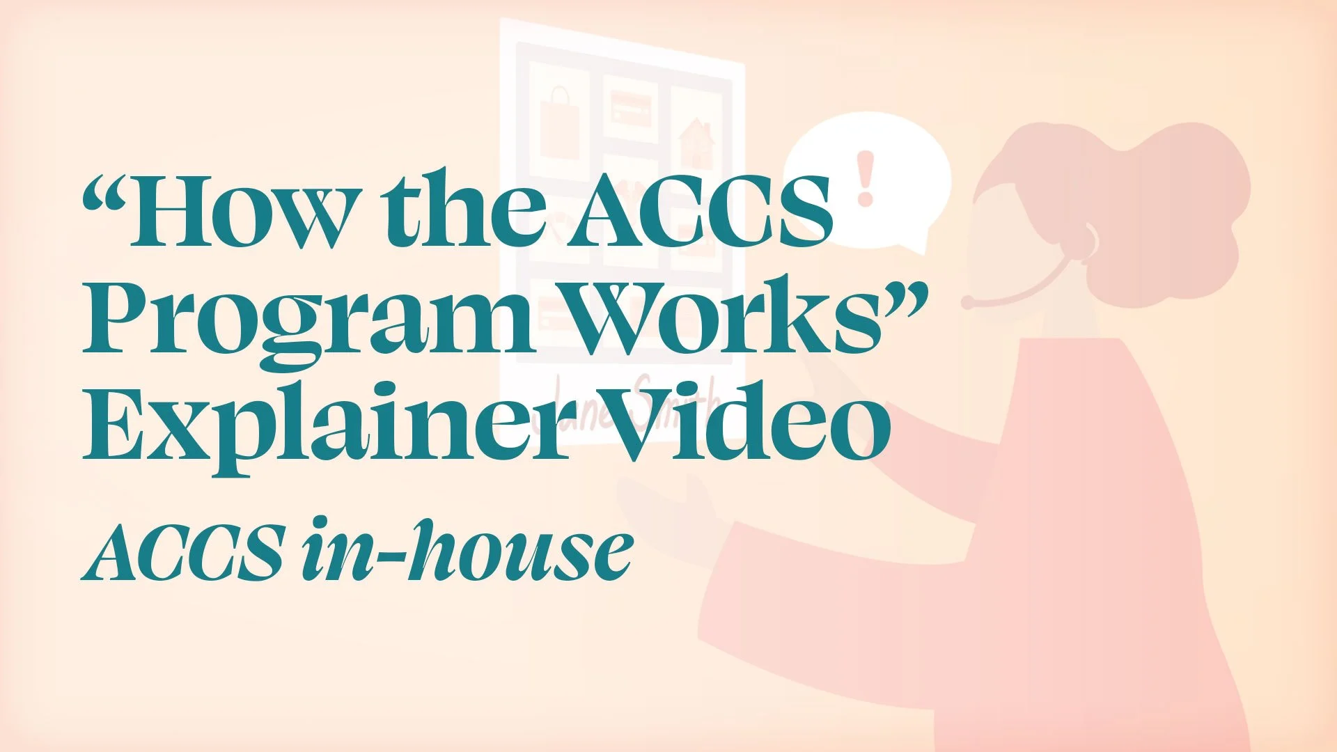 Like the "We Change Lives" video, a hired camera crew shot our presenter reading a few scripts on location at ACCS HQ. I then took the many, many gigabytes of footage and—with the magic of editing and motion design—a series of ads was born! This is just one of six in total that came out of this project.
